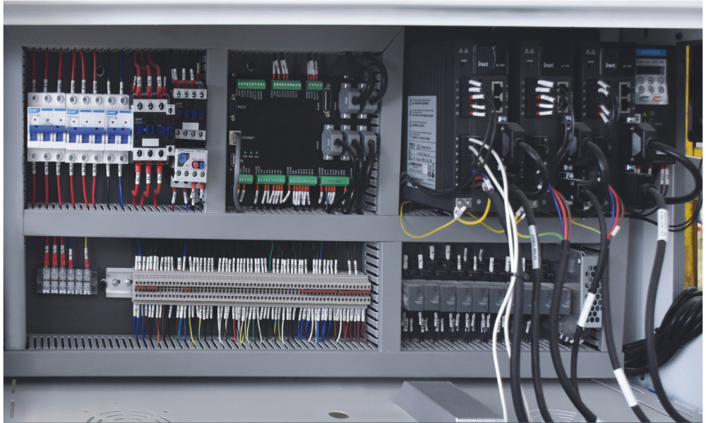 8、電氣系統(tǒng):整機采用全伺服運動控制,各種電氣元件、檢測開關均采用日本、臺灣、法國、德國等公司產品。
