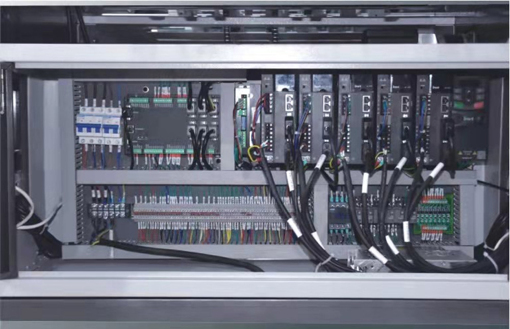 8、電氣系統(tǒng):整機(jī)采用全伺服運(yùn)動(dòng)控制,各種電氣元件、檢測(cè)開(kāi)關(guān)均采用日本、臺(tái)灣、法國(guó)、德國(guó)等公司產(chǎn)品。